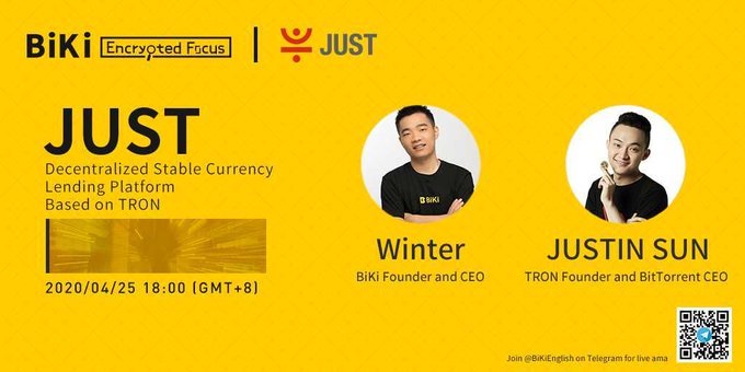The @BiKiEnglish X #JUST (@DeFi_JUST) AMA is coming on : t.me