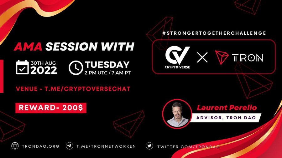 Be sure to join an AMA with @PerelloLaurent and @CryptoVerse_Co on Aug. 30 @ 2PM UTC / 7AM PDT 🚀