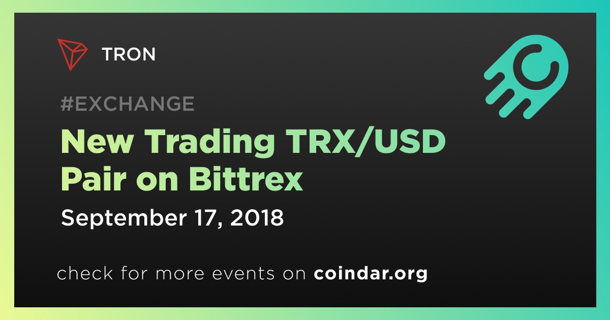✅ $TRX / USD pair available on @BittrexExchange starting on September 17. This is another step towards the adoption of #TRON and the Blockchain technology! twitter.com