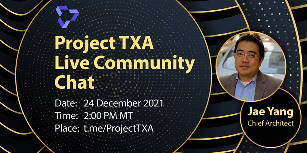 Come join $TXA Chief Architect, Jae Yang in the Live Community Chat this Friday. He will be sharing his thoughts on Project TXA.