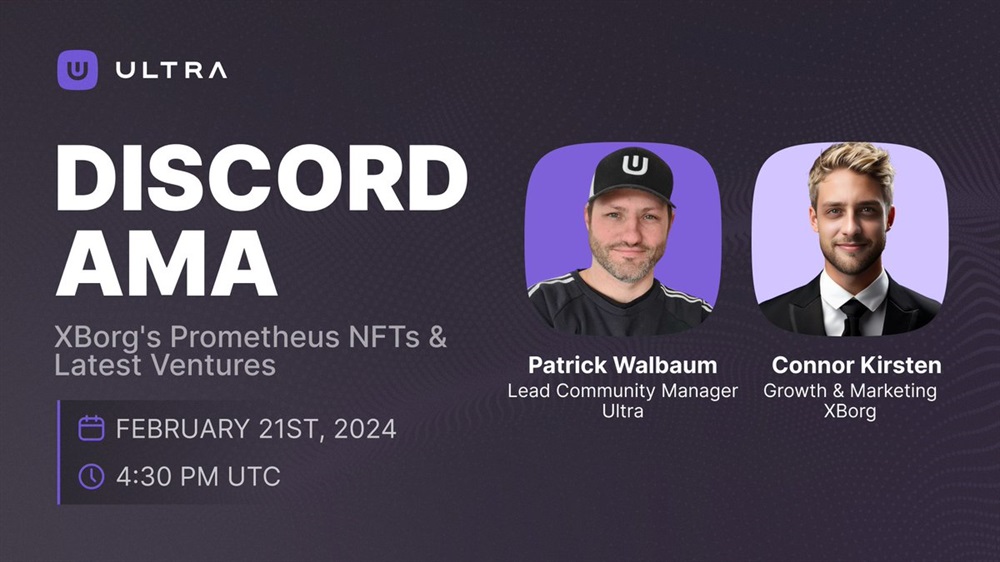 Ultra will host an AMA on Discord on February 21st at 16:30 UTC. The discussion will revolve around the XBG Prometheus NFTs and XBorg’s ongoing projects.