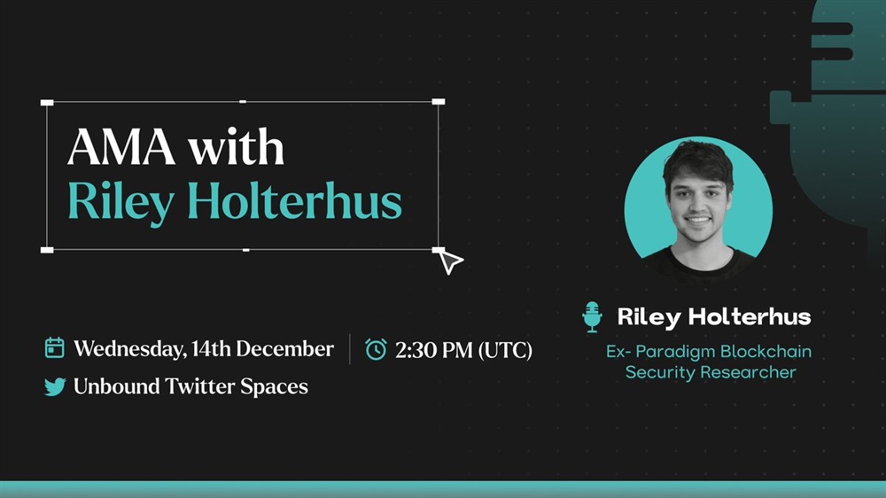 Tune in to the Unbound Twitter space on Wednesday, December 14th at 2:30 PM UTC as we welcome security auditor @rileyholterhus to discuss Web 3 security and the latest Unbound V2 audit!