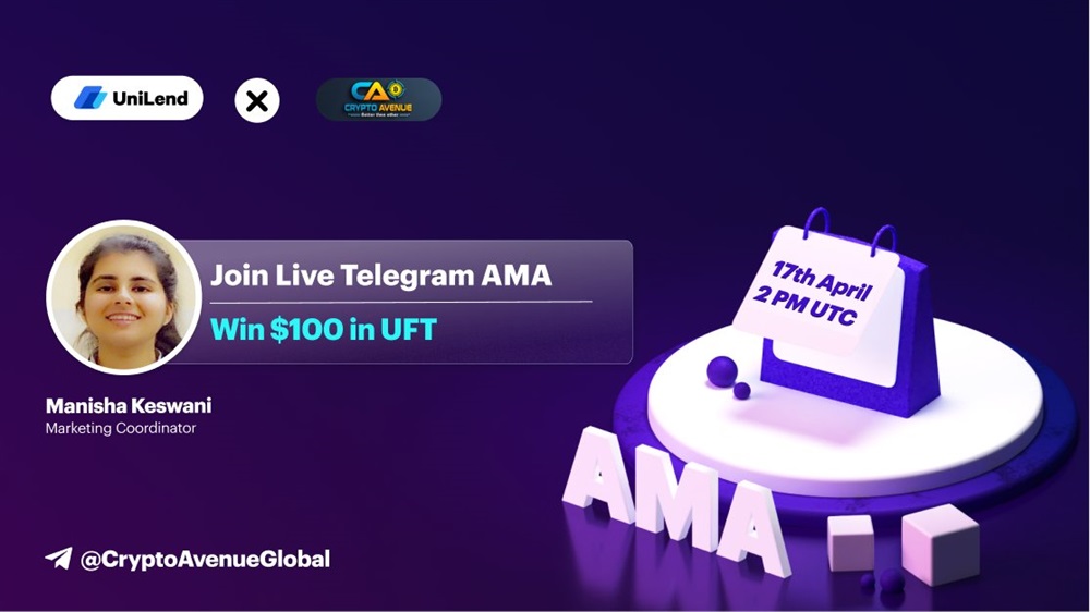 UniLend Finance will host an AMA on Telegram with Crypto Avenue on April 17th at 2 pm UTC. The session will feature the marketing coordinator Manisha Keswani who will discuss the UniLend v.2.0 mainnet, its features, and plans.