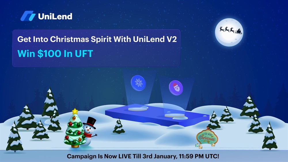 UniLend Finance is hosting a Christmas event in association with UniLend v.2.0 from December 23rd to January 3rd. The event involves lending and borrowing of the SNOW and SANTA tokens. Participants have a chance to win $100 in UFT tokens.