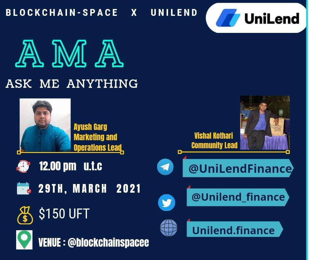 Blockchain Space will hold an AMA with UniLend Finance on March 29th at 12:00PM UTC