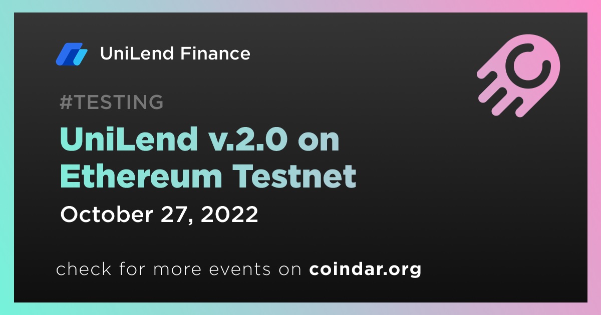 UniLend v.2.0 will be launching on Ethereum Testnet on 27th October