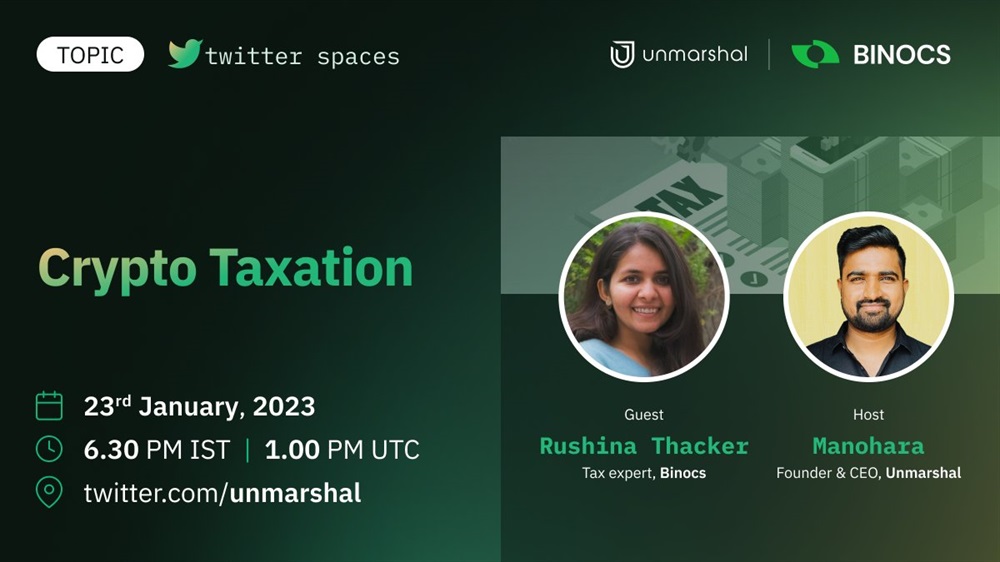 Join us today at 6:30 PM IST | 1:00 PM UTC with @binocs_co as we address all of your questions about crypto taxes in your country.