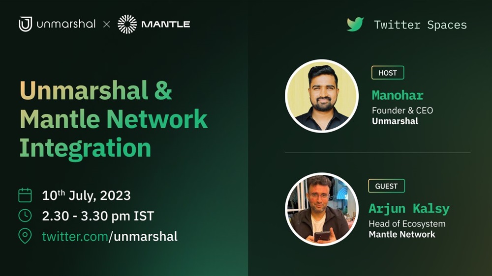 🌐Join us for an exciting #TwitterSpaces session, discussing #Unmarshal X @0xMantle Network Integration!