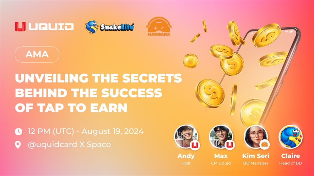 Uquid Coin will host an AMA on Telegram with HangarX and SnakeLite on August 19th at 2 pm UTC. The discussion will focus on the significant success of Tap to Earn games on Telegram.
