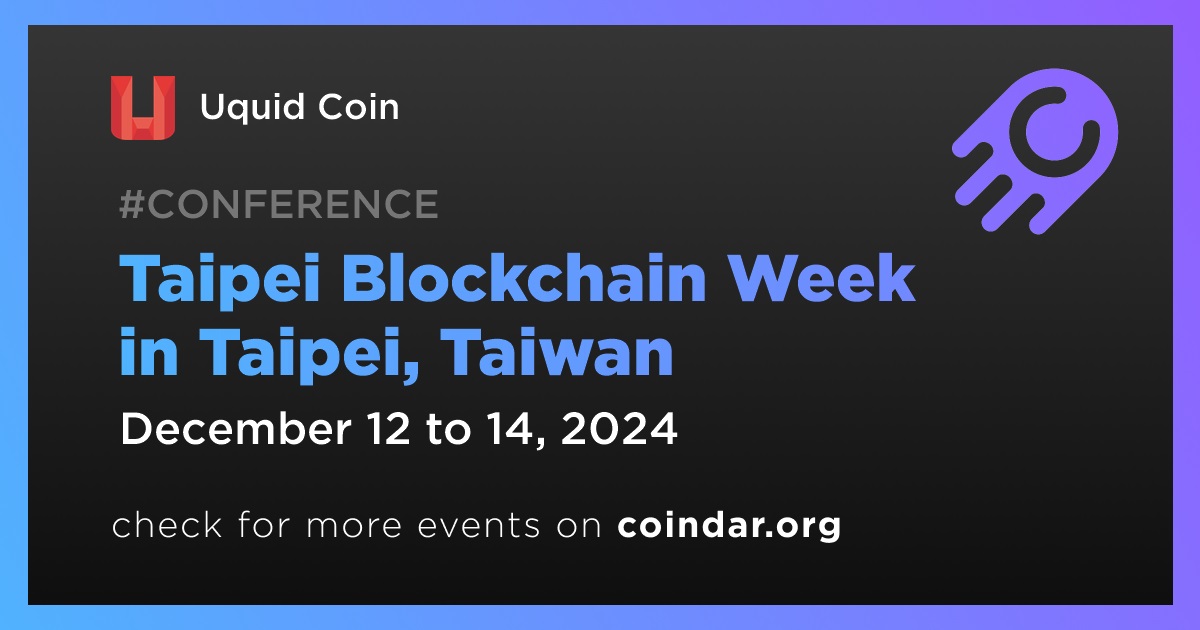 Uquid Coin’s CEO, Tran Hung, is scheduled to speak at the Taipei Blockchain Week conference taking place from December 12 to December 14 in Taipei.