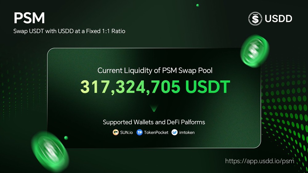 USDD announced the deployment of its Peg Stability Module version 2.0 on May 6th, enabling direct 1:1 swaps between USDD and USDT with negligible fees and no slippage across supported wallets and decentralised finance platforms.