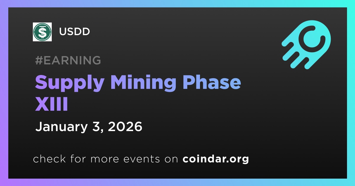 USDD confirmed that Supply Mining Phase XIII under JustLend DAO will begin on January 3.