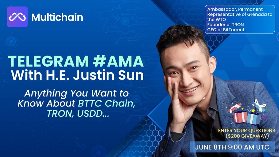 🥰Don't miss the @justinsuntron’s AMA with @MultichainOrg and share $200 #Giveaway.