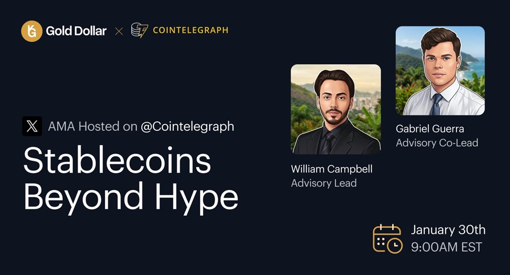 USDKG will participate in an AMA on X hosted by Cointelegraph on January 30 at 14:00 UTC. The event is set to outline the regulatory basis of the asset, its existing integrations and the rationale for employing gold backing.