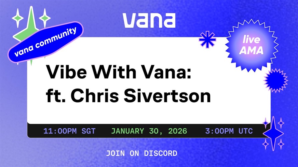 Vana has scheduled a community call on Discord on January 30th at 15:00 UTC, where a representative from the marketing department will outline ongoing initiatives and present recent updates to the Vega protocol.