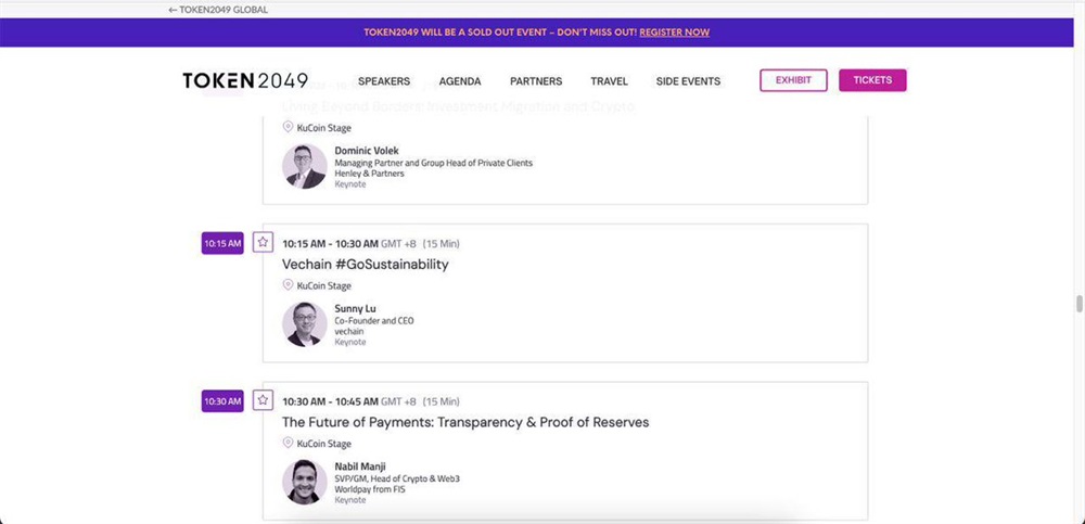 VeChain is set to participate in the upcoming Token2049 event in Singapore on September 14th. During the event, a representative from VeChain, will present on how the cryptocurrency is addressing sustainability issues for both individuals and businesses through incentivized solutions.