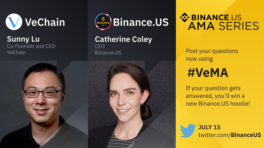 Heads up! Our Co-Founder and CEO @sunshinelu24 is invited by @BinanceUS CEO Catherine Coley @cryptocoley in a special #VeMA AMA session on 15 July! Be sure to join us and get a chance to learn more about #VeChain and win a hoodie! twitter.com