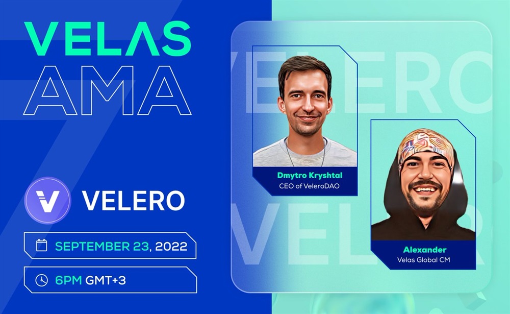 AMA session with Dmytro Kryshtal, CMO VeleroDAO and Alex, Global CM at Velas, is happening on September 23, 2022 on Twitter
