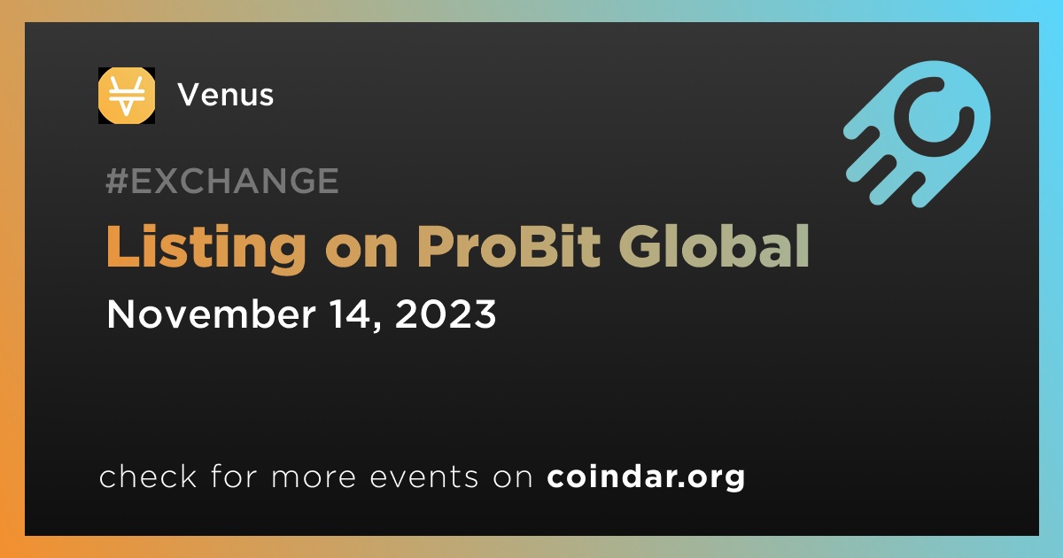 ProBit Global will list Venus Protocol (XVS) on November 14th, with trading pairs being XVS/USDT.