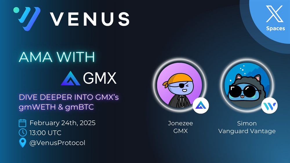 Venus will host an AMA on X with GMX on February 24th at 13:00 UTC.