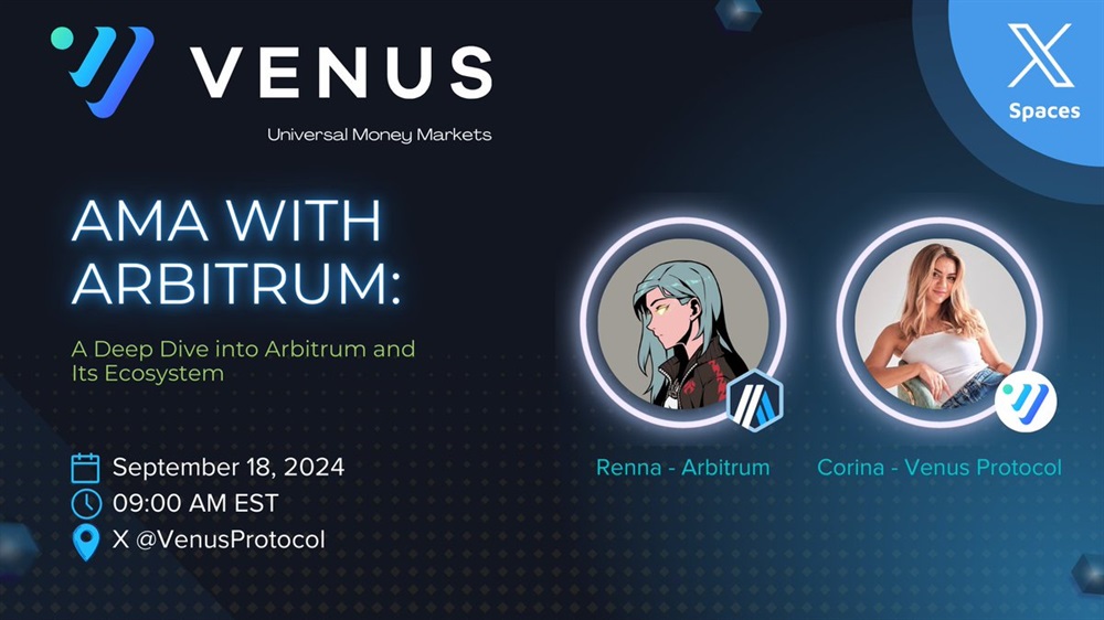 Venus will host an AMA on X with Arbitrum on September 18th at 13:00 UTC. The discussion will revolve around the new LST Pool on Venus and how users can benefit from depositing on Arbitrum. The conversation will also touch on the future developments in the Arbitrum ecosystem.