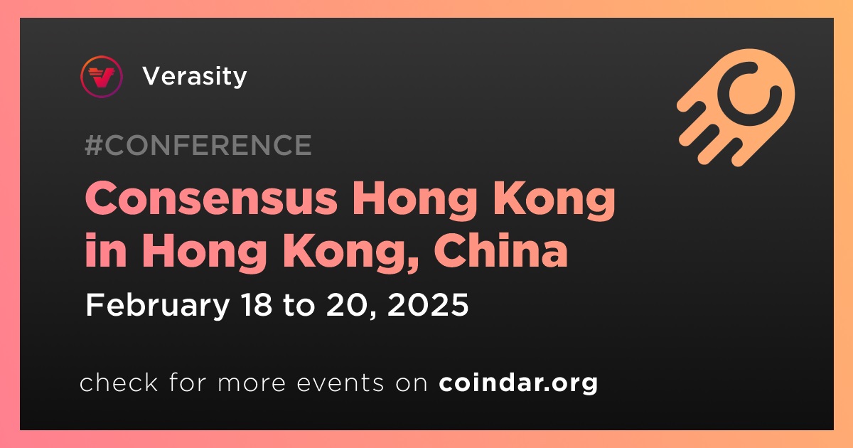 Verasity will particiapte at Consensus Hong Kong, taking place in Hong Kong on February 18th-20th.