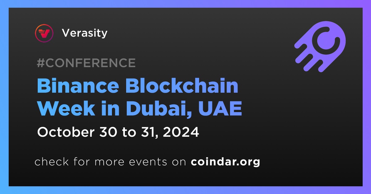 Verasity will participate in Binance Blockchain Week in Dubai on October 30-31. The company’s CEO, Mark Firth, and chief marketing officer will be on site to engage with innovators and discuss advancements in blockchain technology.