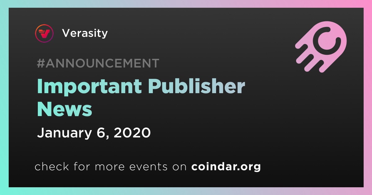 Verasity VRA: Important Publisher News