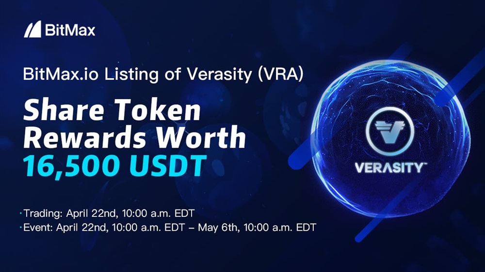 bitmax.io will list Verasity (VRA) under the trading pair of VRA/USDT on April 22nd, 10:00 a.m. EDT.