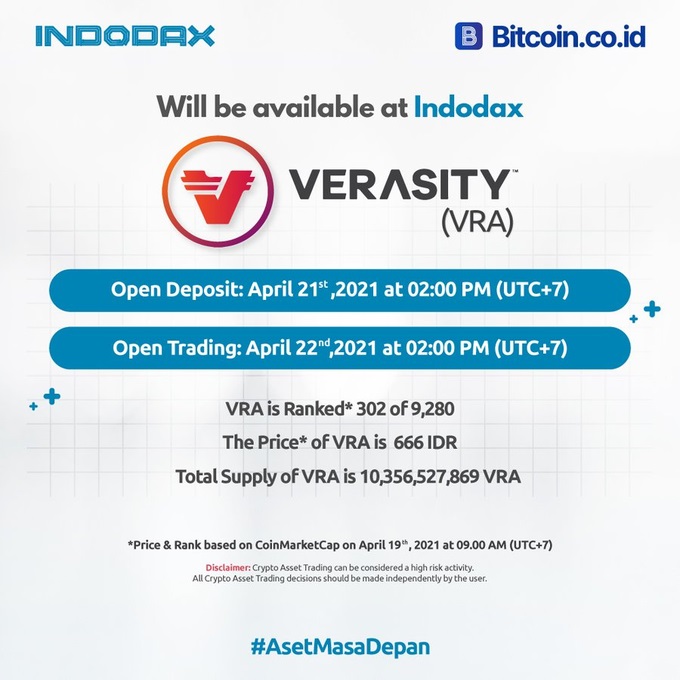 Verasity VRA: Listing on Indodax
