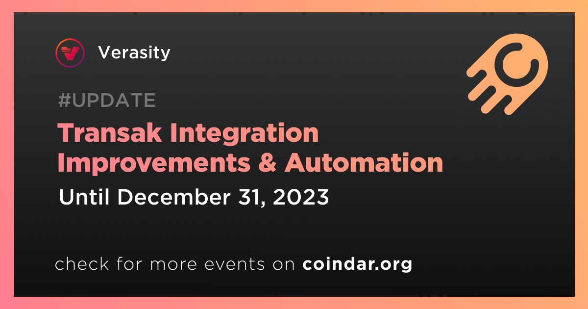 Verasity VRA: Transak Integration Improvements & Automation