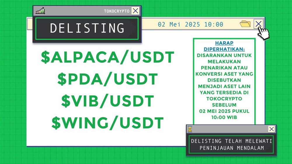 Tokocrypto will delist Viberate (VIB) on May 2nd at 03:00 UTC.