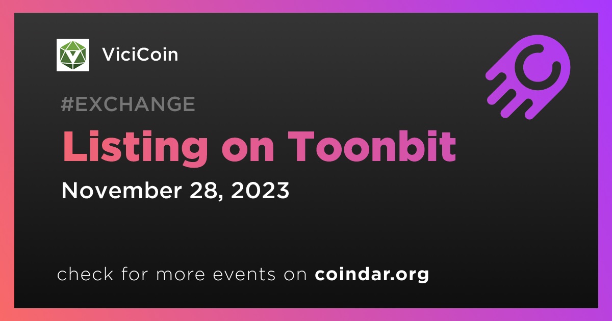 $VCNT is now listed on Toonbit! Learn more and explore the limitless possibilities with ViciCoin. Join the VCNT community today! https://vicicoin.io/