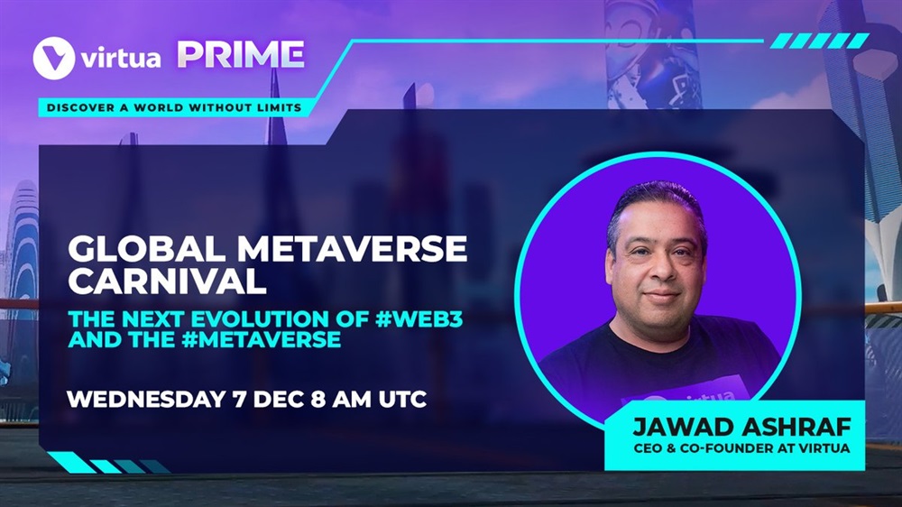 Our CEO @jawadvirtua is speaking at #GlobalMetaverseCarnival 2022, joining a panel about "The Next Evolution of #Web3 and the #Metaverse"!