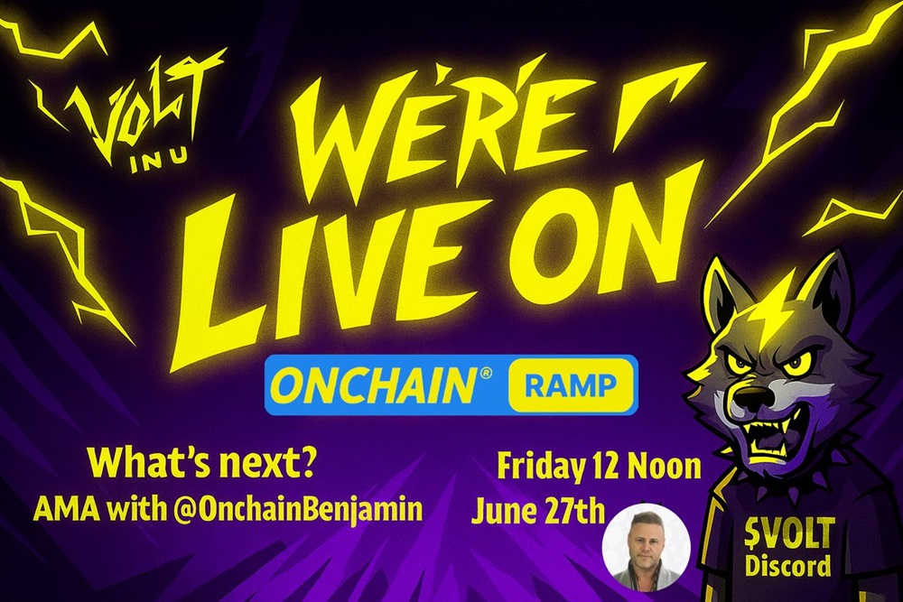 Volt Inu will host an AMA on X, beginning with a discussion on the next steps in onboarding through the OnChain Ramp. The session is scheduled for June 27th at 17:00 UTC.
