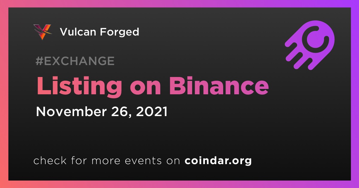 Binance will be the 7th largest among the exchanges where Vulcan Forged is listed