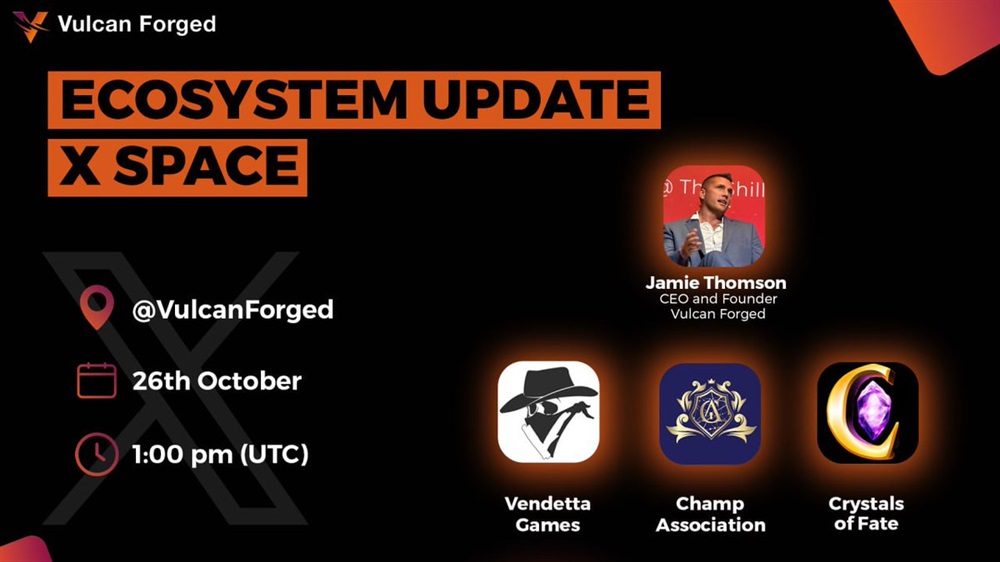 Vulcan Forged is set to host an AMA on X on the 26th of October. The event will be led by the company’s CEO, Jamie Thomson. The purpose of the event is to provide updates on the current state of the ecosystem.