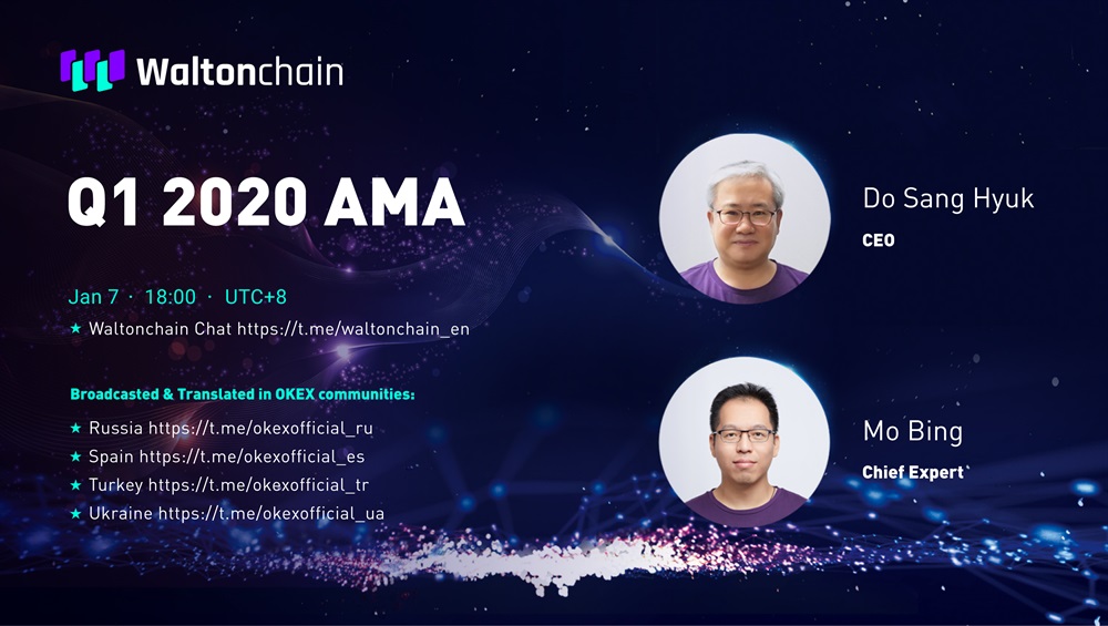 Waltonchain Q1 2020 AMA will be held in Waltonchain Chat (http://t.me/waltonchain_en) at 18:00 on Jan. 7 (UTC+8) and broadcasted/translated in OKEX communities:Russia https://t.me/okexofficial_ru, Spain https://t.me/okexofficial_es, Turkey https://t.me/okexofficial_tr, Ukraine https://t.me/okexofficial_ua.