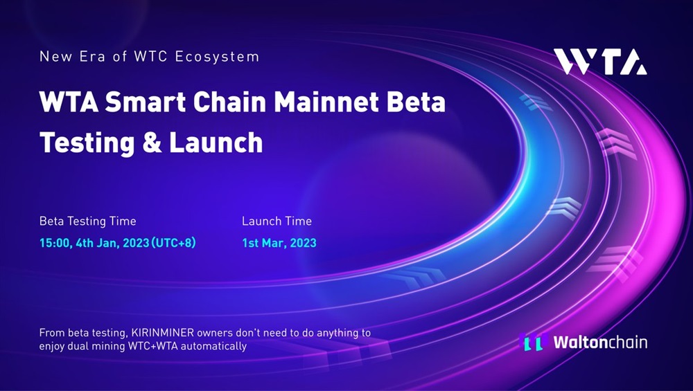 WTA Smart Chain Mainnet Beta Testing on 15:00, 4th Jan, 2023 (UTC+8)