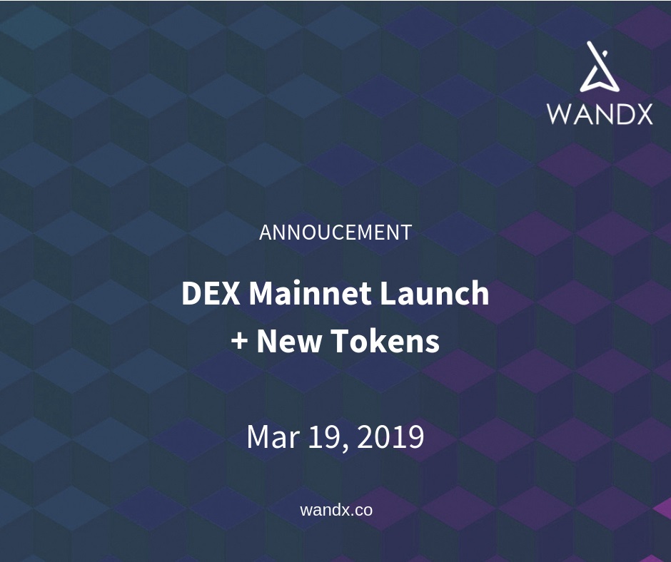WandX DEX on NEO, Wanchain and AION is set to go live on the Mainnet on March 19, 2019. Two new tokens will also be released - WANDW (on Wanchain) and WANDA (on AION) following the DEX launch.