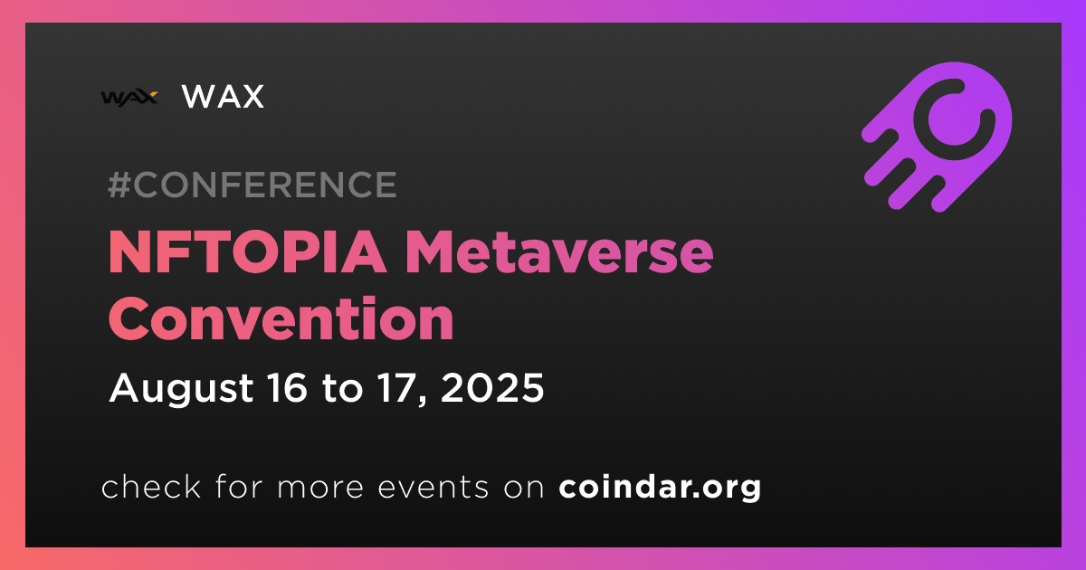 WAX will participate in the NFTOPIA Metaverse Convention, scheduled for August 16–17. The event’s program includes thematic panels, digital asset drops and gaming activities.