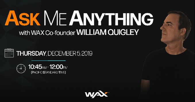 📆 WAX Co-founder @WilliamEQuigley is hosting a Twitter #AMA on Thursday December 5th at 10:45am PST!