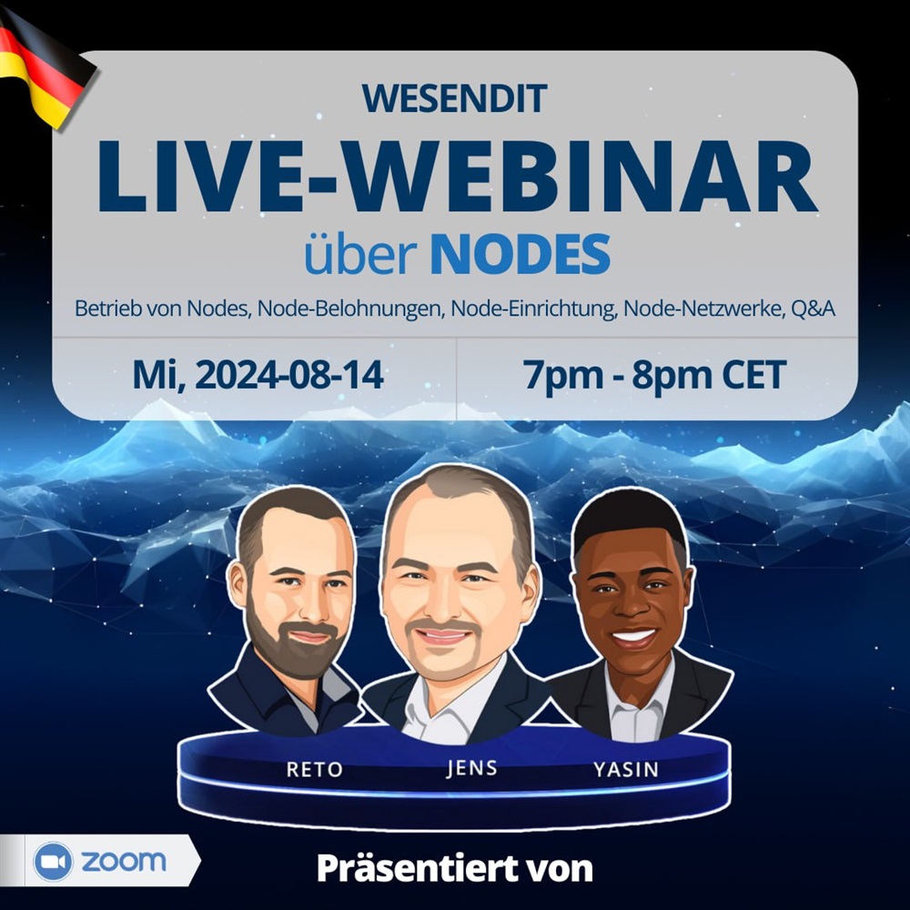 WeSendit is set to host a webinar on August 14th from 5:00 pm to 6:00 pm UTC. The webinar will be conducted in German, but participants from all linguistic backgrounds are welcome. The topic of the webinar is “Running a node with WeSendit”.