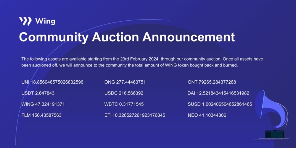 Wing Finance will host a community auction on February 23rd. The auction will be exclusively accessible through the ONTO Wallet. It is important to note that half of the revenue generated from this auction will be utilized to buy back and burn WING tokens.