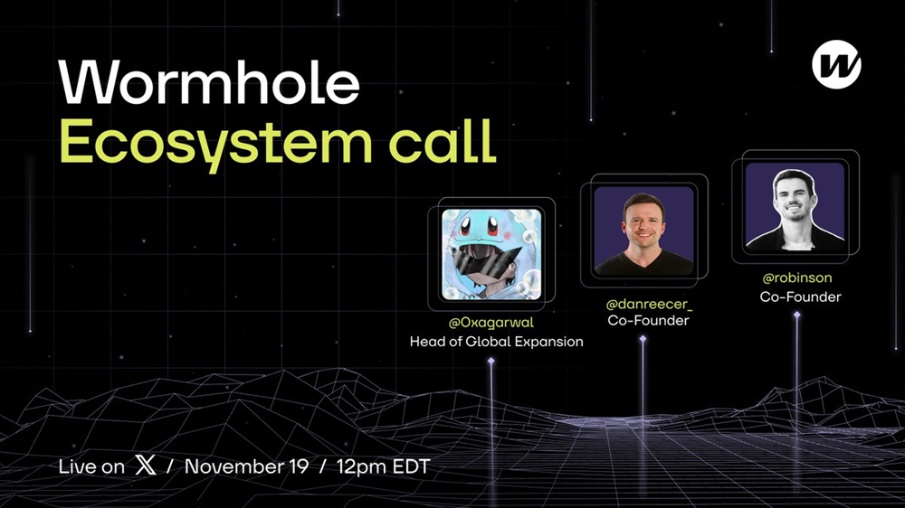 Wormhole will host an Ecosystem Call on 19 November at 16:00 UTC to deliver the latest ecosystem updates, with participation from Wormhole Foundation Co-Founder Robinson Burkey.