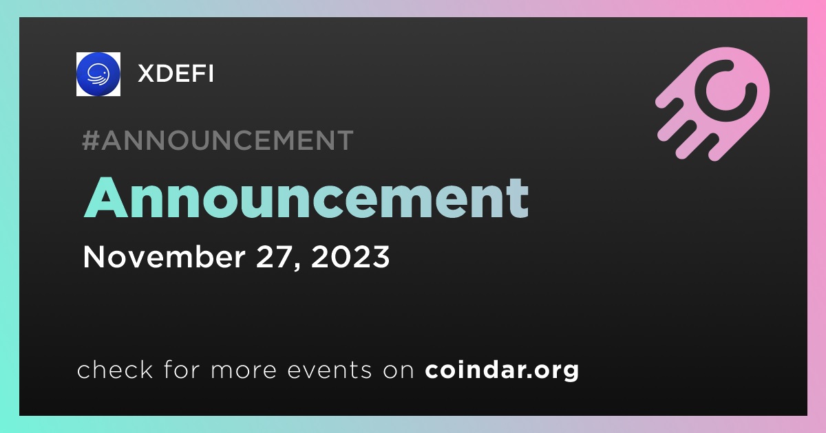 XDEFI is set to make an announcement related to the ZetaChain ecosystem on November 27th.
