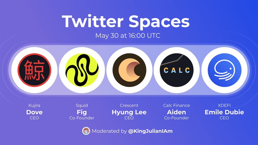 Join us in 1 hour as we have a live discussion with our friends from @TeamKujira, @squidrouter, @CrescentHub, and @CALC_Finance. Moderated by @KingJulianIAm.