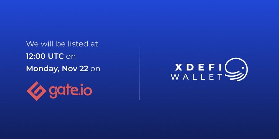 🐙 $XDEFI will be listed on @gate_io at 12:00 UTC on Nov 22