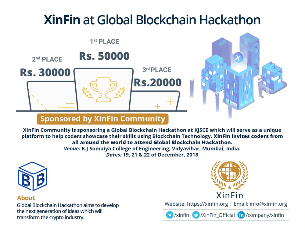 #XinFin #Community is sponsoring a Global #Blockchain #Hackathon at @BLOOMBOX_KJSCE from 19-22 dec, 2018