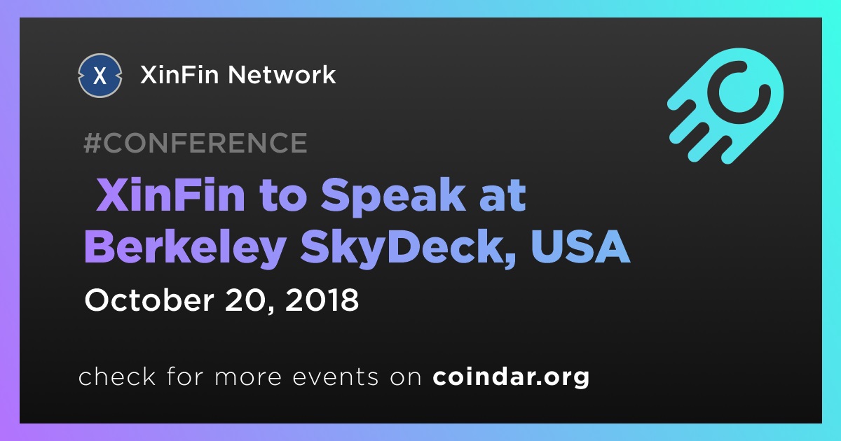 XinFin Network XDCE: XinFin to Speak at Berkeley SkyDeck, USA